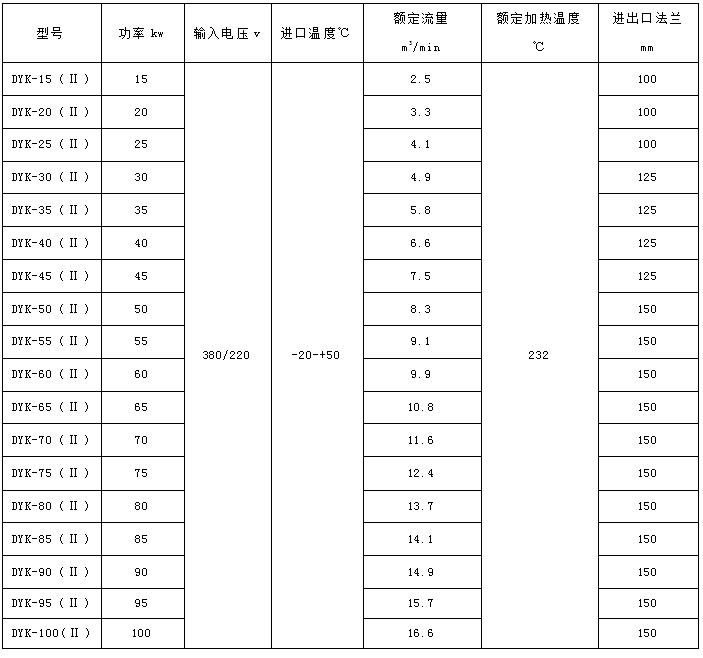 主要参数:1、型号:DYK15 ~ 9(Ⅱ) 2、额定功率:15kW ~ 9kW 3、输入电压:38V±(三相四线) 4、控温精度:.5 5、冷态缘电阻:≥2MΩ
